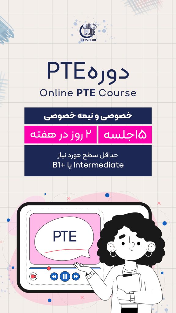 دور های آمادگی آزمون PTE بصورت آنلاین و فشرده با اساتید متخصص و مجرب همین آزمون برگزار میگردد. طول این دوره بین ۱۲ تا ۱۵ جلسه می باشد که بصورت خصوصی و نیمه خصوصی ( ۱ تا ۳ نفر) ارائه می شود.